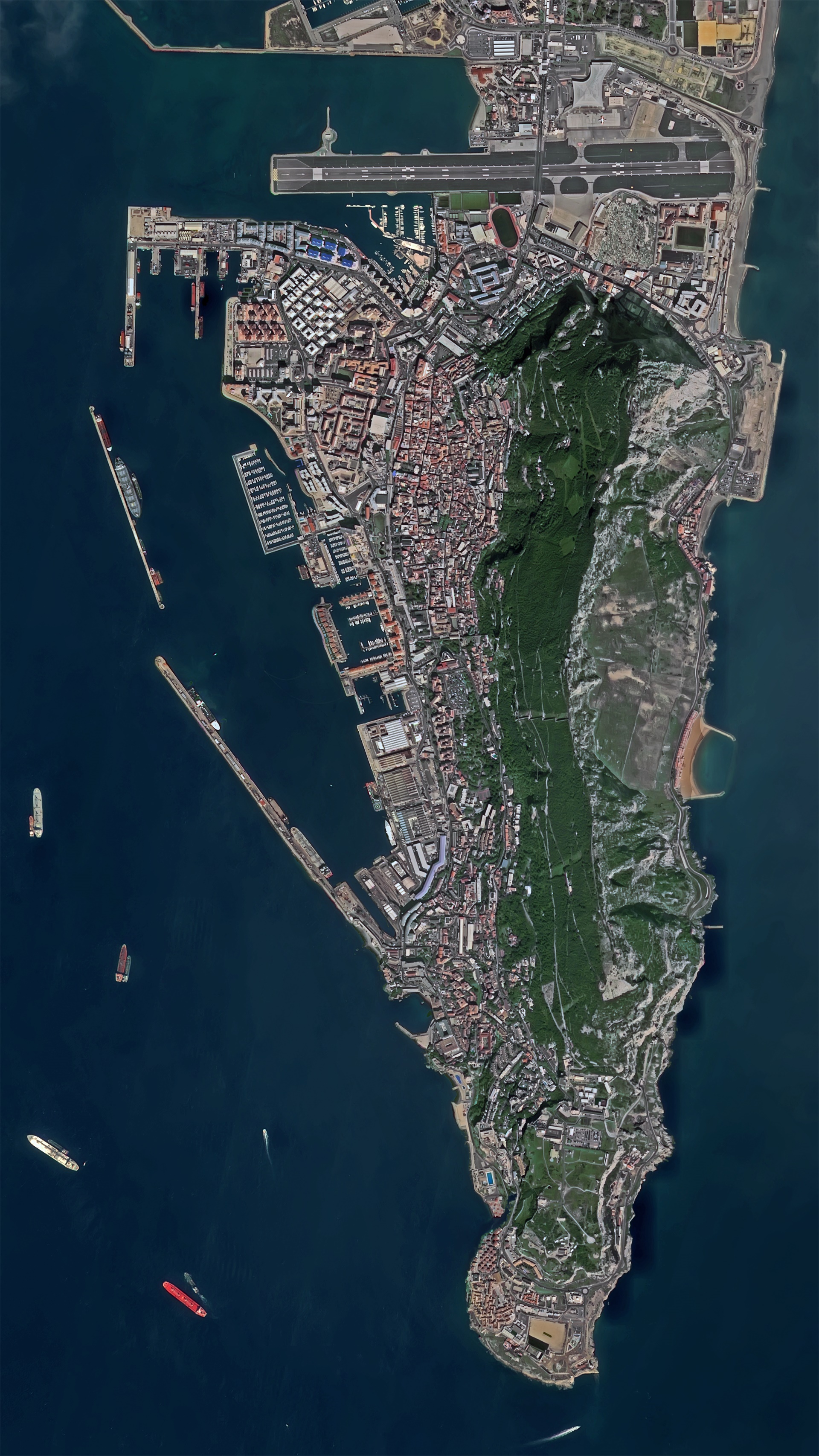 直布罗陀机场是位伊比利半岛最南端,标志和修补部位在柏油跑道上勾勒出的几何图案,构成了一幅抽象艺术般的奇怪画面。该机场同属民用及军用,由英国国防部属下的英国皇家空军管理。直布罗陀机场十分接近市中心,距离市中心只有约500米。