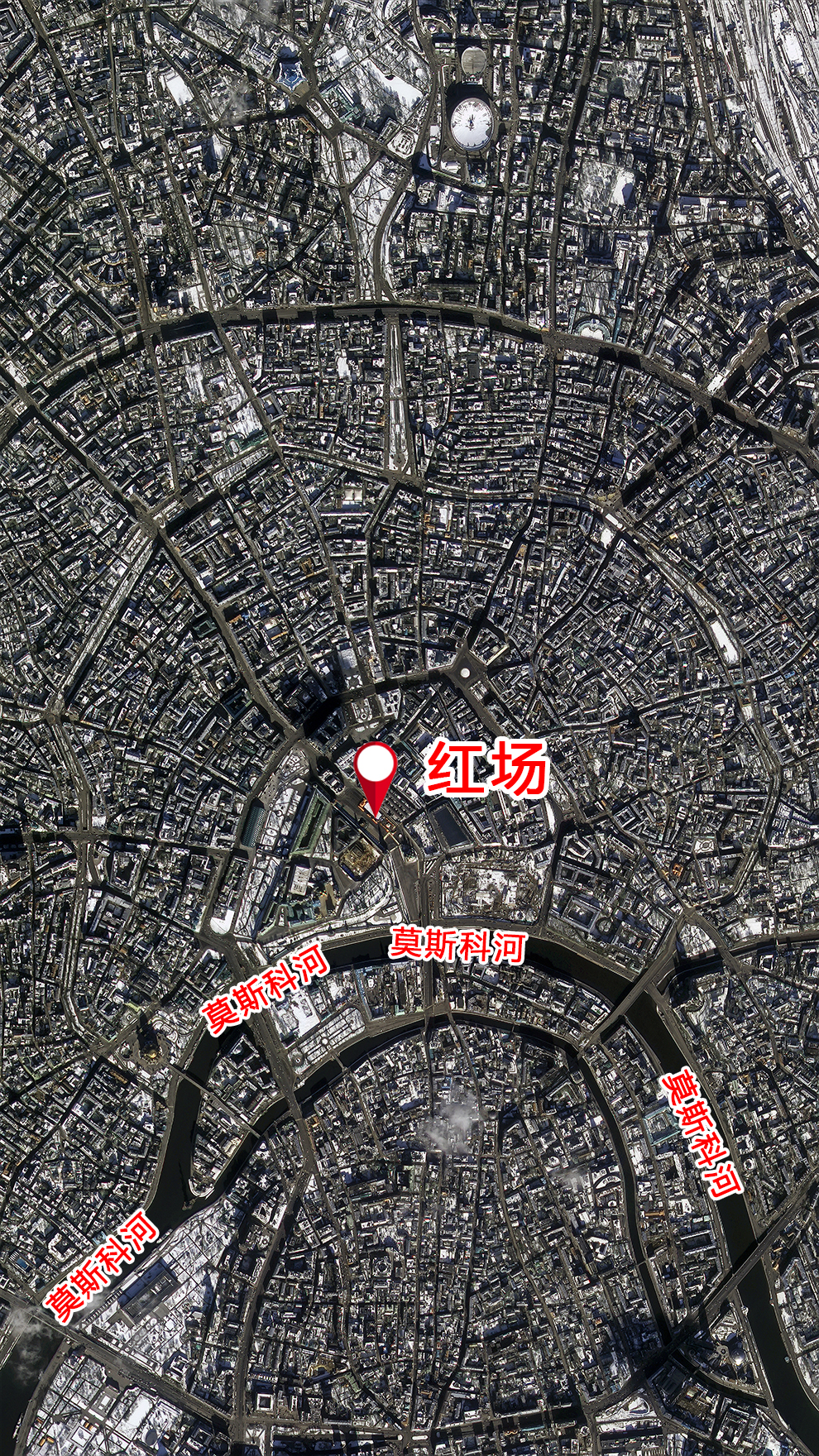莫斯科是一座已有800多年历史的古城,城区横跨莫斯科河及其支流亚乌扎河两岸。第22届夏季奥林匹克运动会,于1980年7月19日-8月3日在莫斯科举行。卫星影像中著名的莫斯科红场,就是当年奥运会马拉松选手的必经之路。
