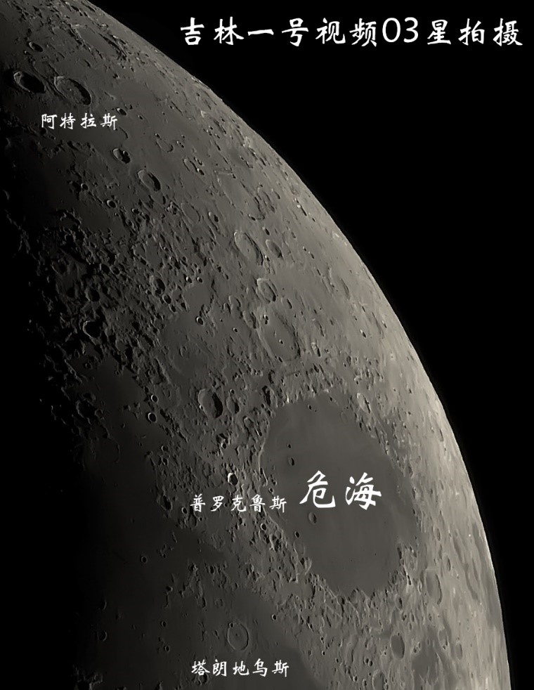 本着探(Xi)索(Huan)未(Gao)知(Shi)的精神,长光卫星的小伙伴们,萌发了利用吉林一号对地观测卫星,进行天文目标观测的想法。虽然对地观测和对天观测对卫星的轨道、姿态等要求差异很大,但偶尔“兼职”,进行一些试验性的天文成像,对于功能设计灵活、姿态控制精度高的吉林一号卫星来说,还是不在话下。于是,就有了吉林一号的第一次,秒变“小哈勃”,获得了下面这张美(Chu)伦(Mu)美(Jing)奂(Xin)的月球照片。