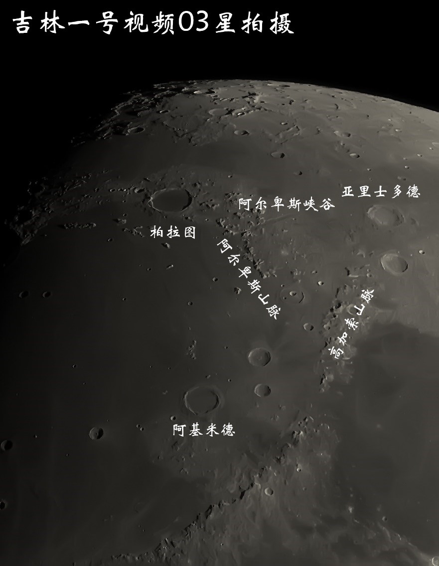 天文爱好者平时使用地面望远镜拍月亮的时候,为了消除大气扰动,往往通过成百上千帧图片叠加处理,耗时很长,处理也非常讲究。而吉林一号获取的这幅照片完美地展示了太空观测的优势,单帧成像曝光5ms,就达到了非常惊艳的效果。