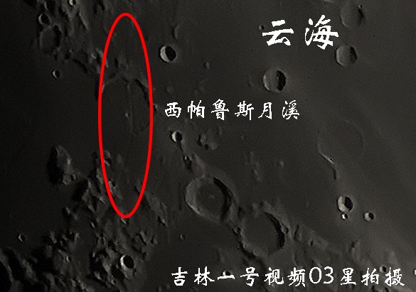 同样,有海就会有汇聚入海的河流,在月球表面,也存在类似河流的线条,称为月溪,其本质是较大的山谷。较为有名的就是这条阿尔卑斯峡谷,其位于阿尔卑斯山脉(当然,这是月球上的阿尔卑斯,也没有牛奶糖),夹在柏拉图、亚里士多德和阿基米德三座大环形山之间。另外,西帕鲁斯月溪位于月球南极附近,这条月溪深度较浅,但在我们的成像中清晰可见,足以检验我们月面拍摄的精度。