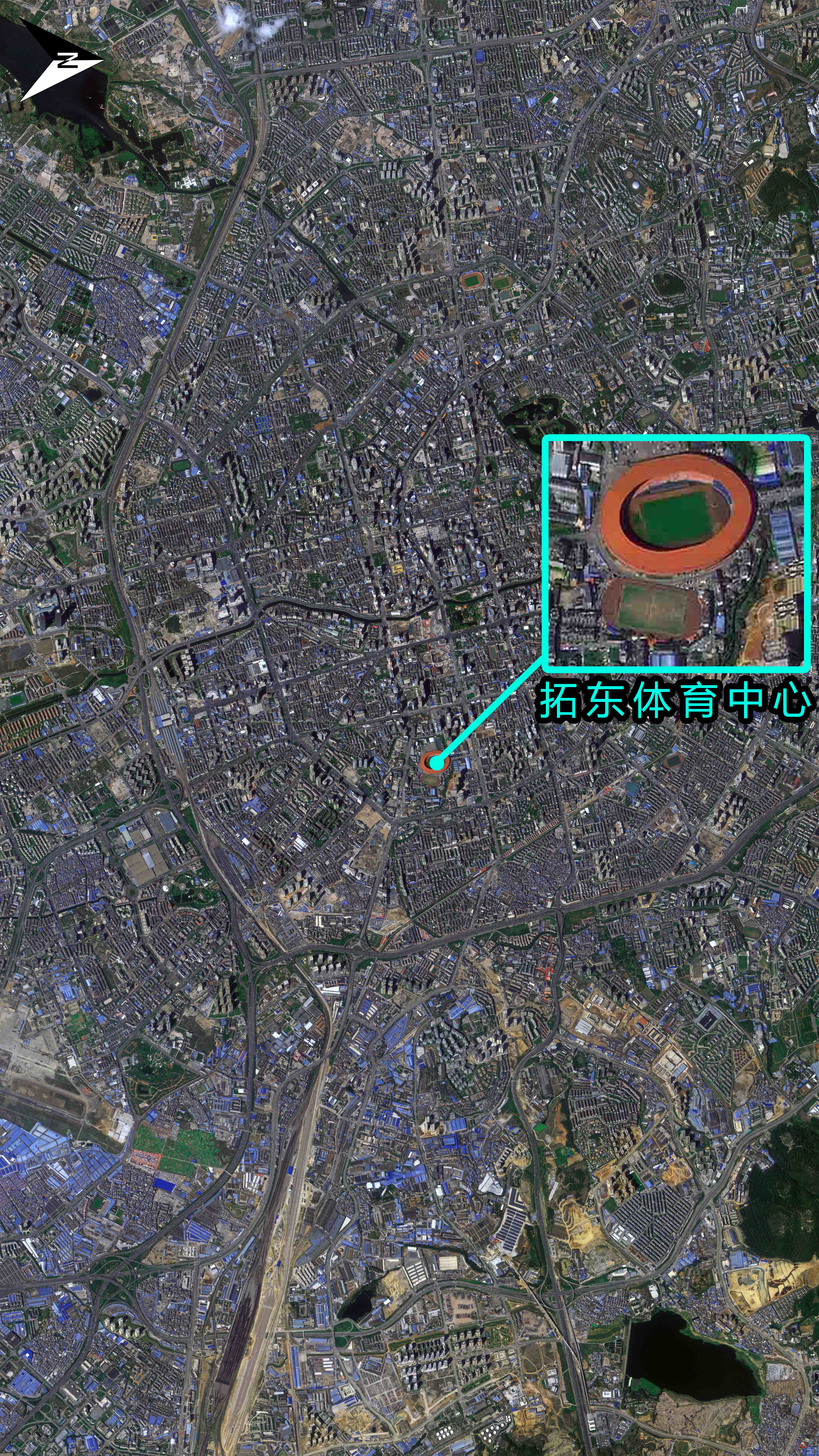 “吉林一号”拍摄的卫星图是昆明市拓东体育中心以及周边地区。拓东体育中心位于昆明市区东部,区位优势明显,交通方便。体育中心总占地面积73000㎡,是目前云南省规模最大的综合性体育场馆,也是昆明市开展群众性文体活动的重要场所。