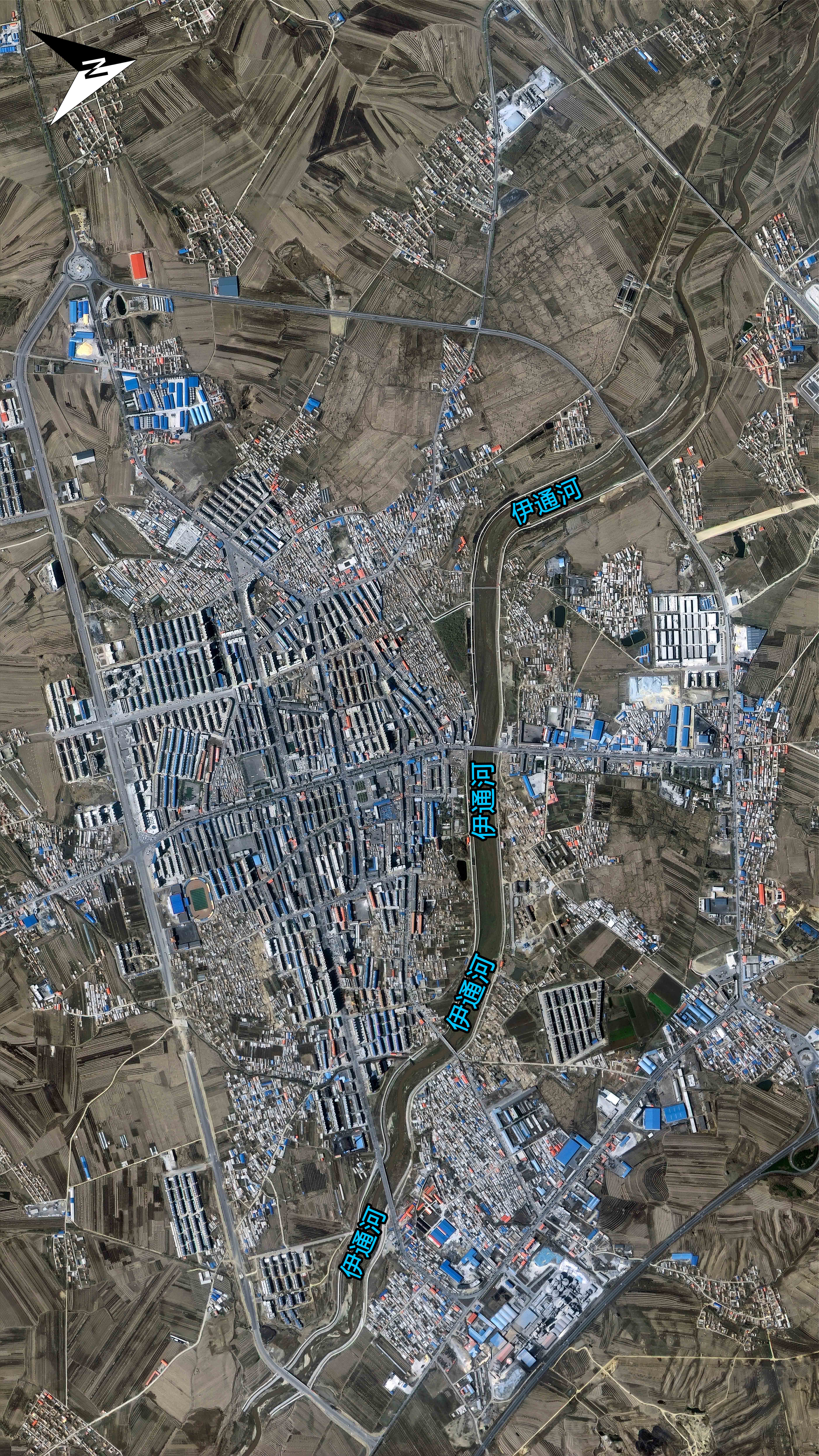 伊通满族自治县位于吉林省中部,隶属于吉林省四平市,总占地面积2523平方公里,总人口约481998人。“吉林一号”拍摄到了长春平原上的千年古流——伊通河。