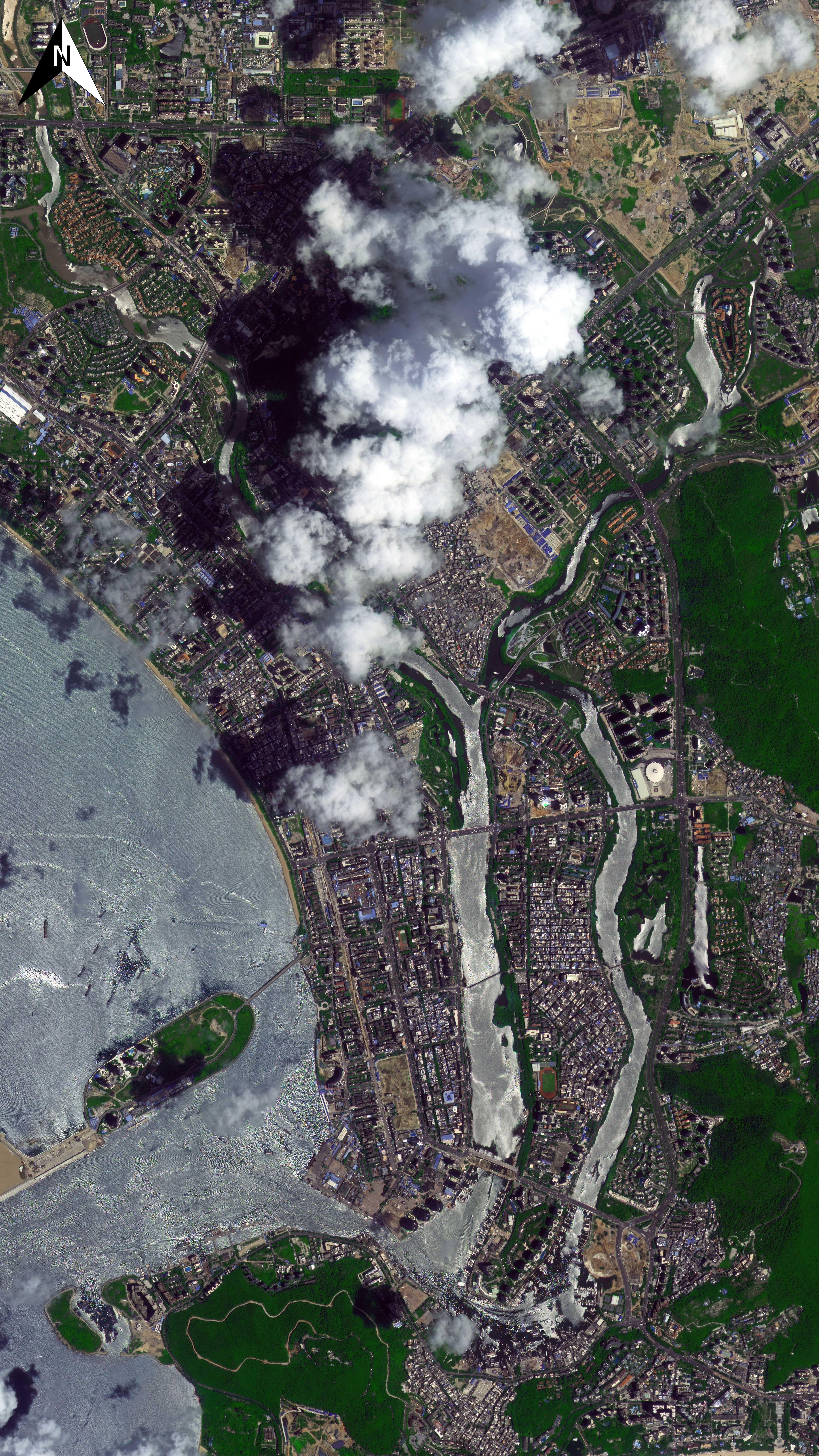 三亚是海南省下辖地级市,位于海南岛的最南端。“吉林一号”拍摄的卫星图显示的是三亚市区的三亚河和临春河交汇及其周边地区。