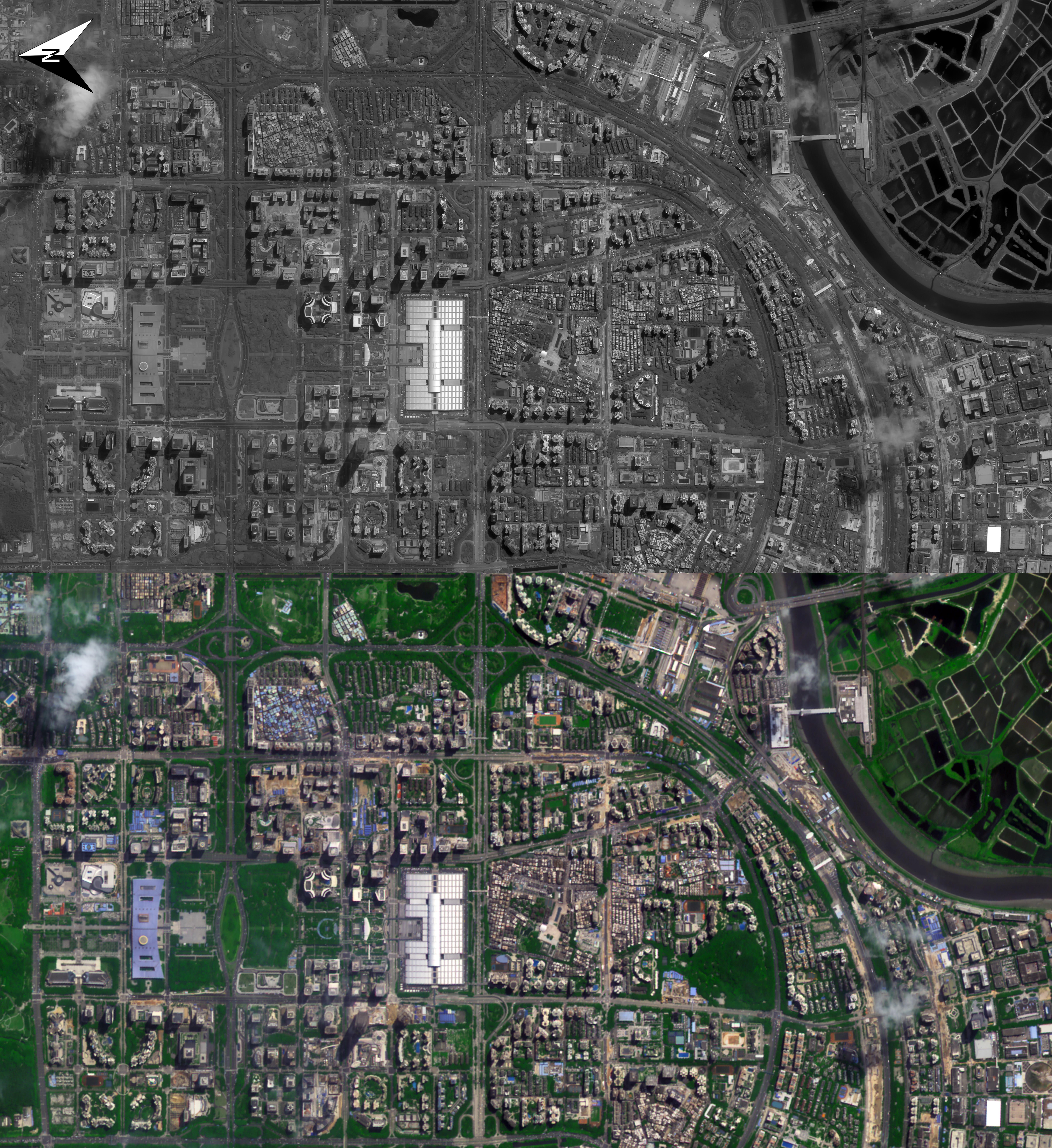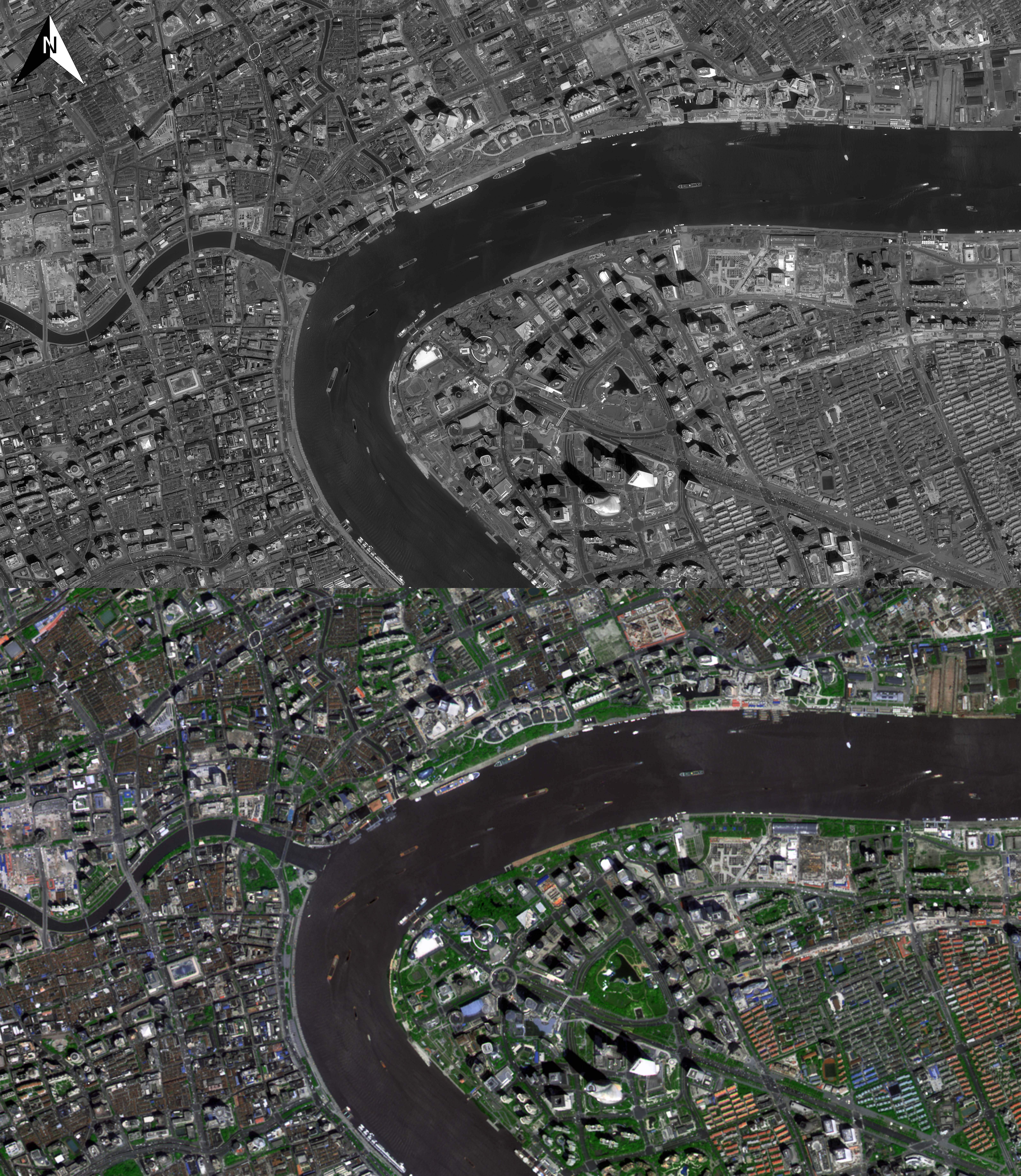 全色影像就是对地物辐射中全色波段影响的摄取,因为是单波段,在图上显示是灰度影像。
