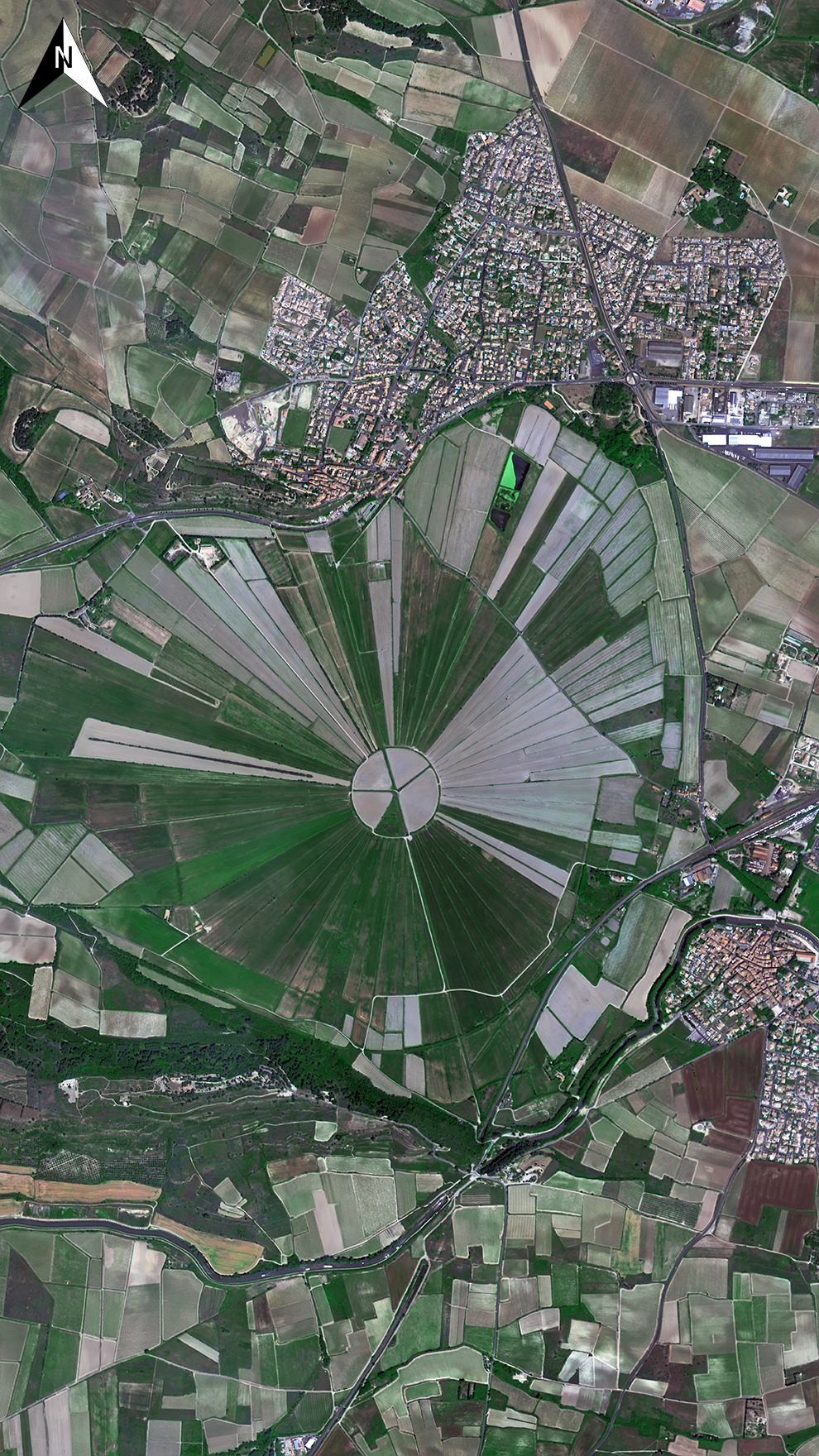 蒙塔迪是法国埃罗省的一个市镇,属于贝济耶区卡佩斯唐县,该市镇气候温和,人口多居于平原和丘陵地区,农业颇为发达。我们可以看到,呈发射状分布的农田几乎遍布整个城镇。