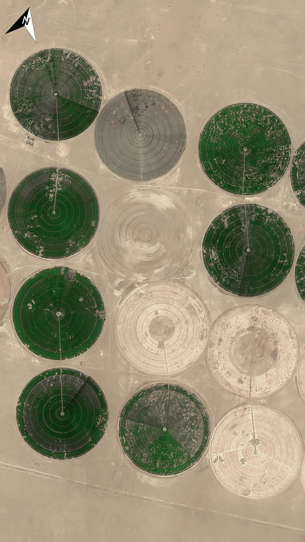 棕榈谷是美国加利福尼亚州洛杉矶县北部的一个城市,从图中我们可以看到该地区的部分农田呈圆形。