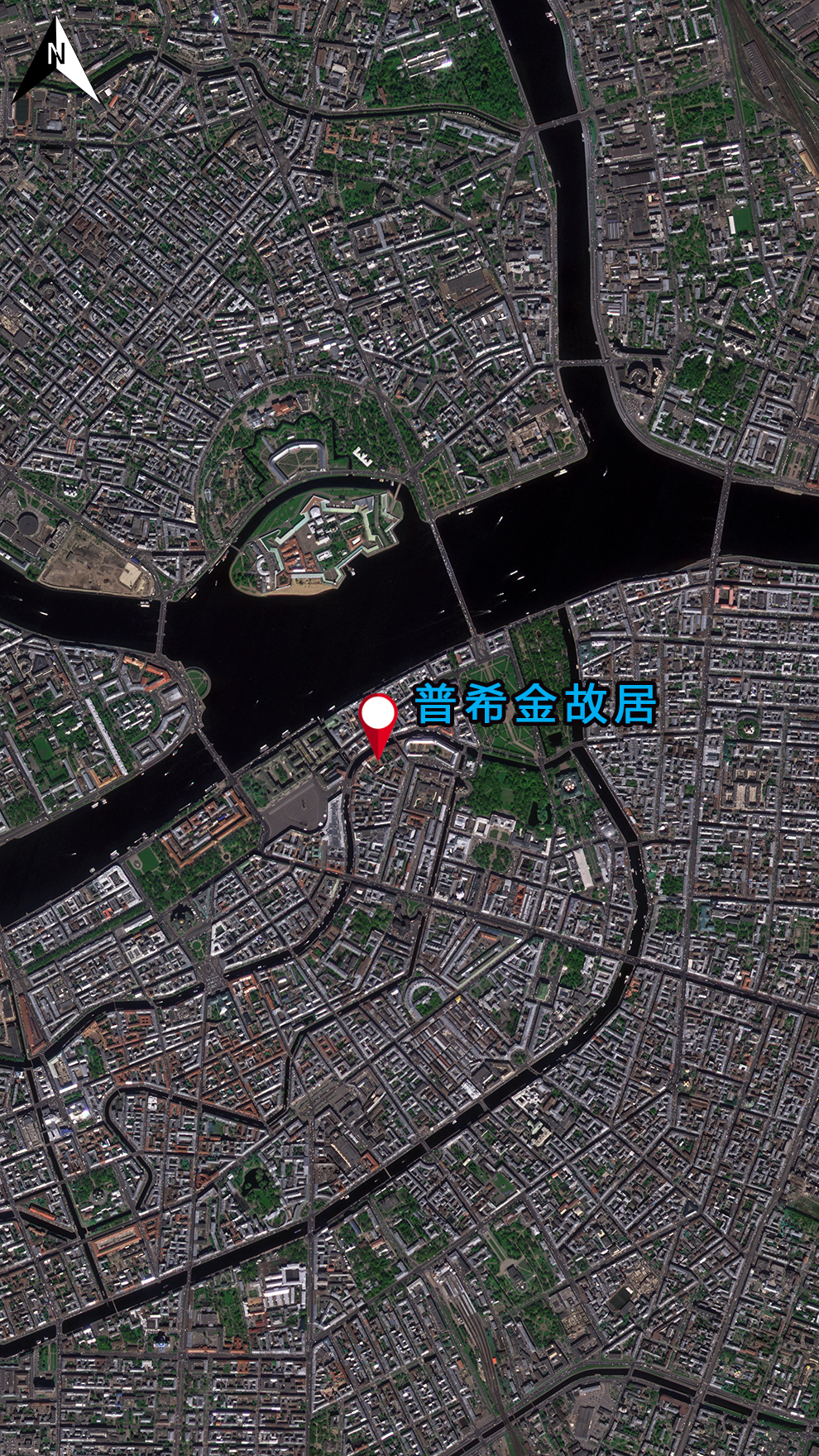 普希金故居位于俄罗斯圣彼得堡市莫伊卡河拐弯处里侧、日本总领事馆对面,在1836年9月至逝世前的约四个月时间里,普希金与其家人生活在这座公寓里。俄罗斯当局将普希金故居整理和改建,变成了现在的普希金故居博物馆,馆里主要展示普希金收藏的家具以及各种文物。