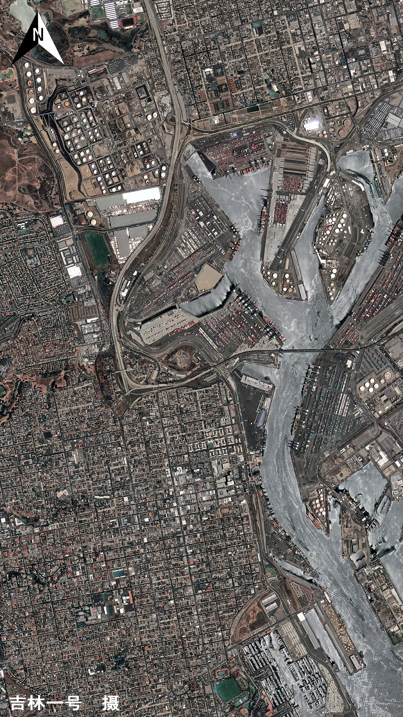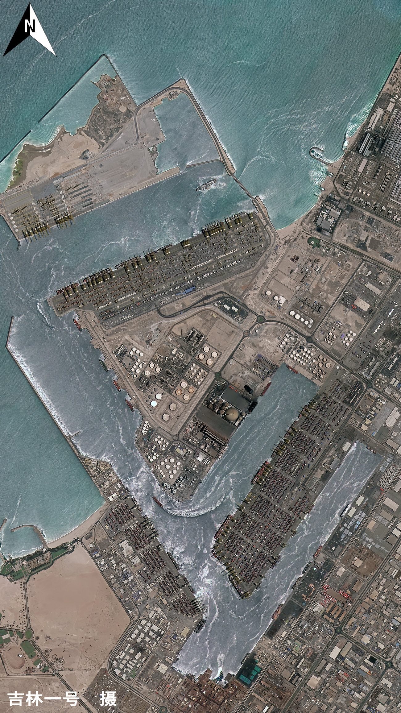 “吉林一号”拍摄的图片上看,这片壮观的集装箱码头位于阿联酋东北沿海,濒临波斯湾南侧的迪拜港。迪拜港是阿联酋最大的港口,也是集装箱大港之一。