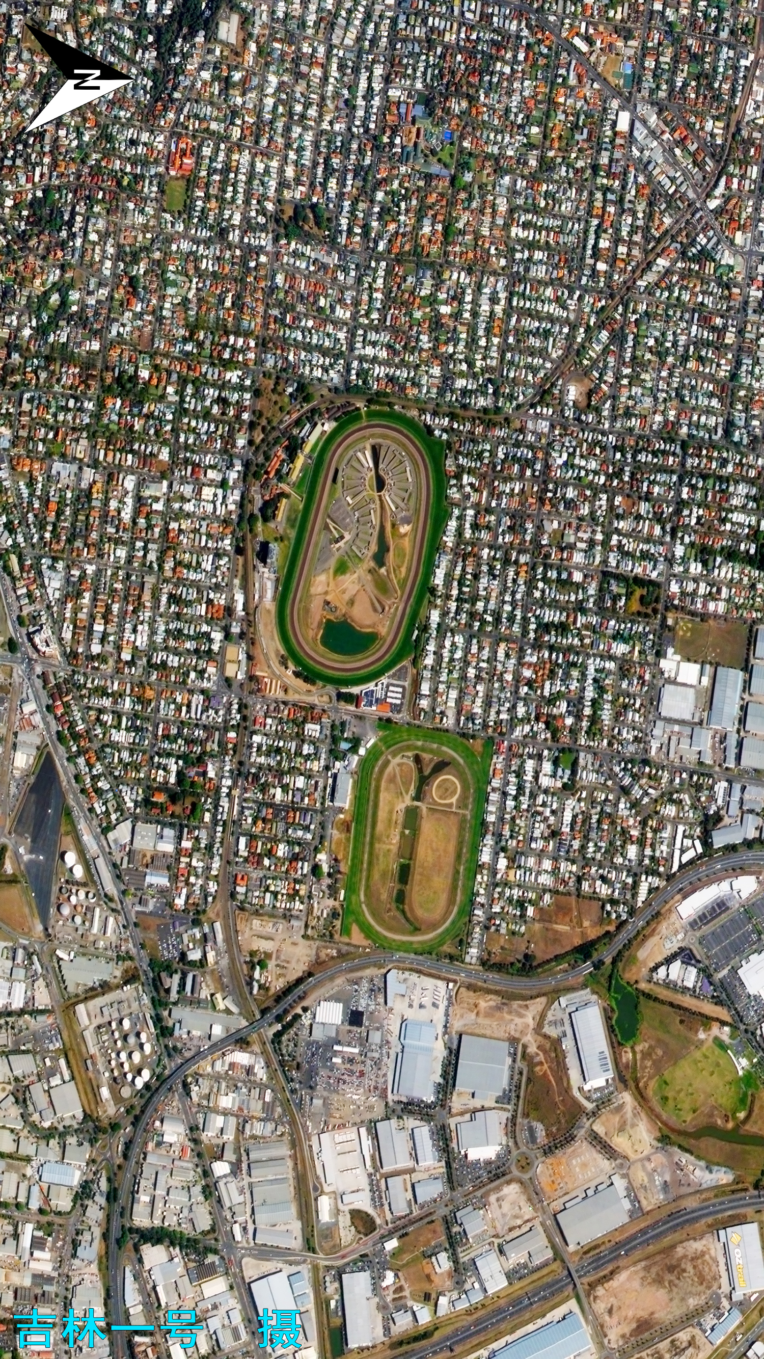“吉林一号”拍摄的这两个赛马场,位于澳大利亚昆士兰州布里斯班,在阿斯科特郊区,布里斯班中央商务区以北7公里。